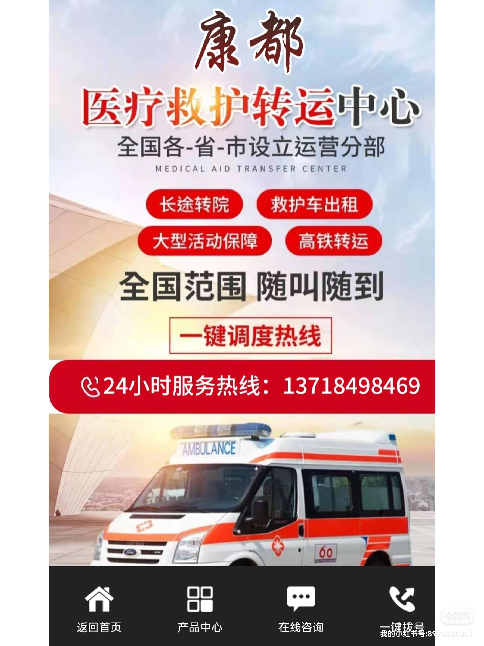 临猗县120救护车长途转运跟大家聊聊如何办理救护车牌照:1.根据许可证税第七条的规定:卫生机关和公共组织设立的医院、具有固定特殊设备和特殊标志的交通工具,如救护车、诊疗车、洒水车、水肥车、垃圾车等,免征许可证税/燃料税;前一项免征许可证税的交通工具,使用前应办理免征手续!2.申请人应准备件/申请机关单位:一、申请设立。(一)民营救护车机构设立许可申请表。(二)设置计画书。下列事项应按规定说明:1.业